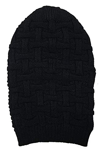 Black Knitted Slouchy Beanie for Men & Women. Its the famous Bob Marley style pattern. Constructed with soft wool, interesting slouch shape. You can hide anything inside and it covers your ears and whole hair! Also it has very soft hand feel. This knit hat best fits an average adult and teen head.