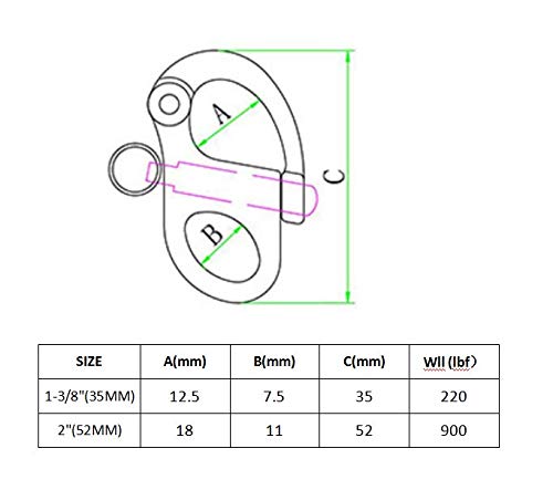 brandname BOOHAO Quick Release Fixed Spring Shackle 1-3/8(35MM)/2”(52MM) Stainless Steel Fixed Bail Snap Shackle for Kayak Sailboat Yacht Sailing Hardware 4 Pieces