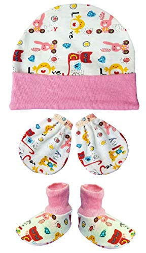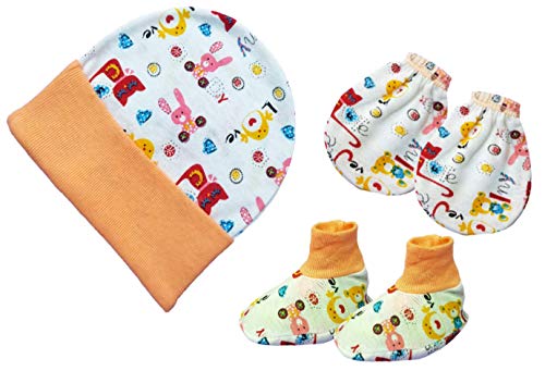 Let your cute little one stay cozy anytime in this cap, mitten and booties set from Brandonn Fashions. This cute set of booties, mittens and cap is perfect for new born babies. Attractive print makes it even more adorable and stylish. It is specially designed to keep your baby warm and stylish while you are in the park or just strolling. Made up of soft organic cotton fabric which is soft and gentle on your baby’s skin. This cute set of Cap, Mittens and Booties keeps the baby warm & cozy. These Bright Color combo set of Booties, Caps and Mittens will keep the New Born Hands, Feet and Head safe from Scratching. Caps, Mittens and Booties have gentle Elastic and it’s easy to wear. This Brandonn set will be a welcome addition to your baby’s wardrobe. Perfect gift for baby shower. Dimension: Cap: W16XL12cms, Mitten: W7XL9 cms, Booties: Sole L: 10cms. Age Group :(0-6 Months) Age Group is for reference purpose only, refers to dimensions for perfect fit.