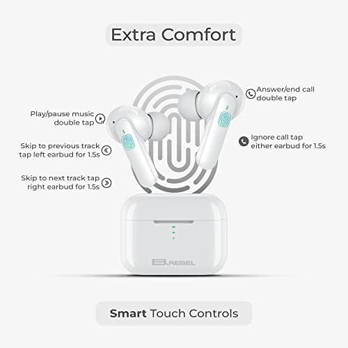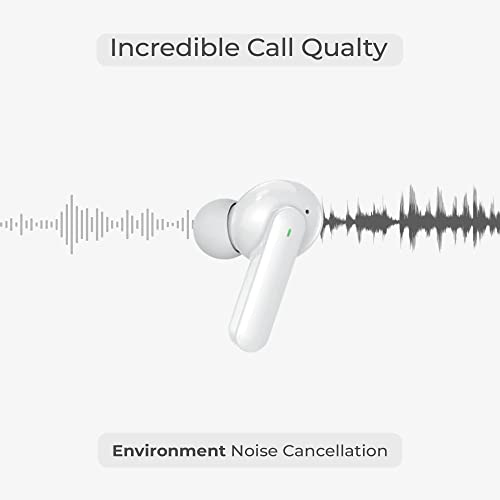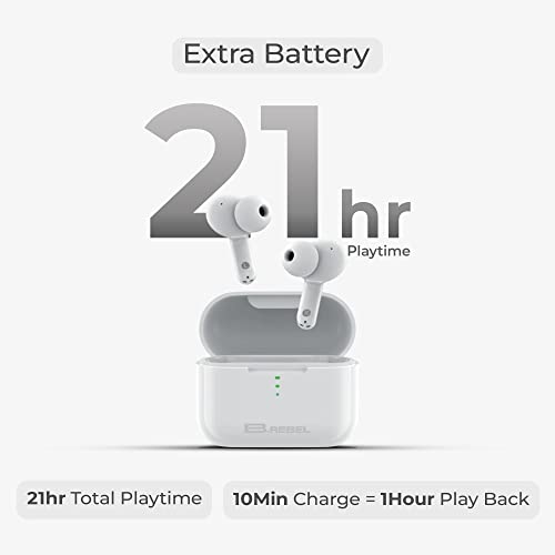 BREBEL® ANC Wireless Earbuds Bluetooth V5.0 In-Ear Headphones with Mic, 21 Hours Of Playtime, Type-C Fast Charging, Noise Cancellation Quad Mics, HD Dynamic Beats Audio, IPX5 headset and (White)