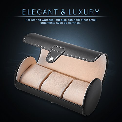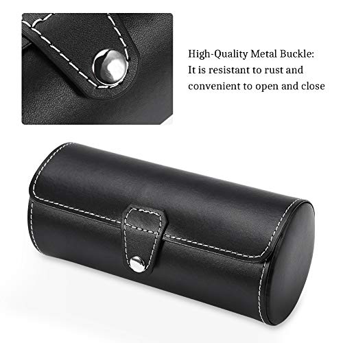 Brino 3 Grids Cylinder Watch Roll Holder Wristwatch Display Case Jewelry Storage Box (Black)