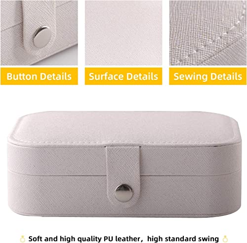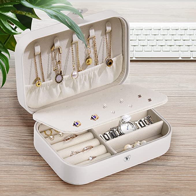 BucketList® Jewelry Box Organizer, Travel Jewelry Case PU Leather Portable Jewelry Storage Box for Women and Girls Earring Rings Necklace Bracelets Accessories, Double Layer (Off-White)
