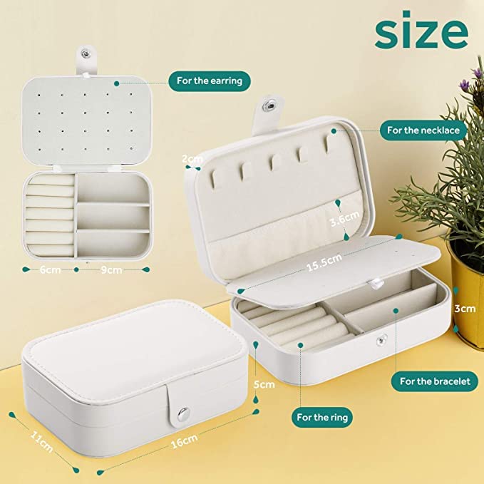 【Travel Jewelry Case】 — The jewelry organizer box size is 16 x 11 x 5cm (L x W x H), portable and light weight, easy to carry in your handbags or in your luggage. It is convenient for journey, travel, weekend trip or business trip, jewelry box also fits all of your jewel inside without taking up a lot of space on dresser