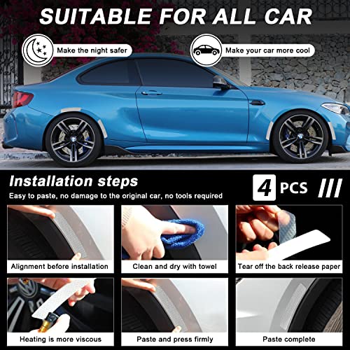 Buylogy® (Yellow) 4 Pcs Car Reflective Trim Side Marker Stickers, Automotive Exterior Accessories Door Reflector Guard Wheel Well Arch, Side Bumper Fenders