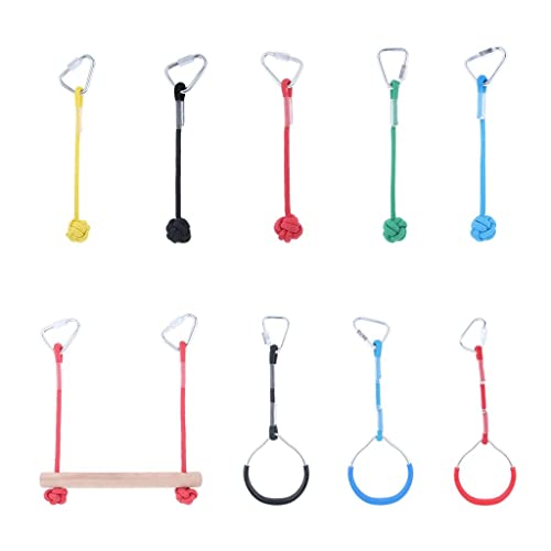 Gymnastic ring obstacle course attachments are heavy duty iron with super strong nylon rope with stitched loops.
