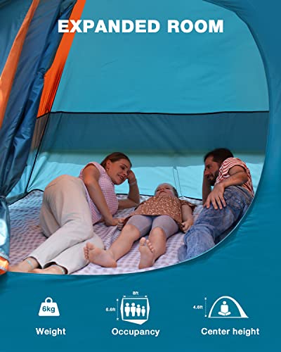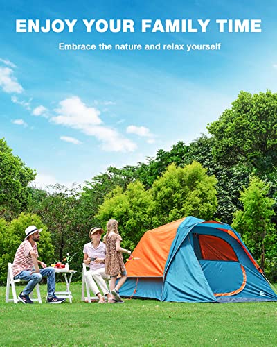Roomy 4 People Family Tent – This spacious tent sleeps 4 people or 1 queen airbed with a center height of 4.6 ft. and a intorior dimension of 8 x 6.6 ft., which are perfect for family camping outdoors, keeping you embrace the nature and relax yourself, and enhance connection with your families