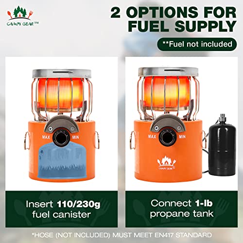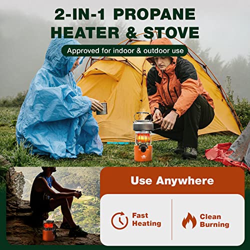 Campy Gear Little Guy 2 in 1 Portable Propane Heater & Stove, Outdoor Camping Gas Stove Camp Tent Heater for Ice Fishing Backpacking Hiking Hunting Survival Emergency (Orange)