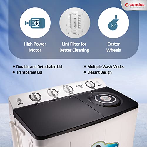Candes 8.5 kg washing machine semi automatic | 5 Year Warranty on Moter | Multi Washing Method | Low Water Conusmption | (CTPL85PL1SWM), Black White
