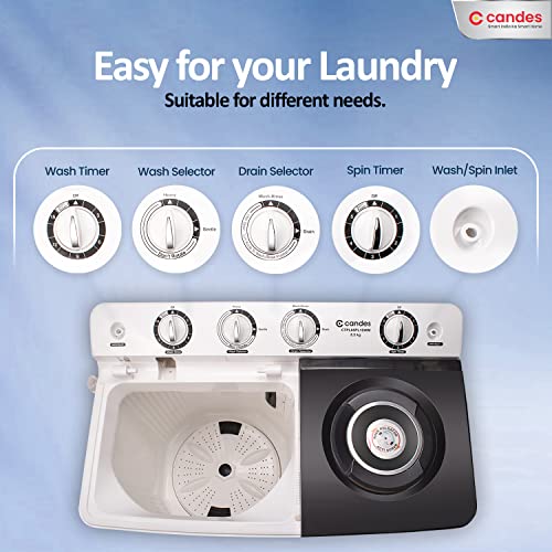 [2-in-1 Design for Convenience]: Candes 7.5 kg washing machine comes with two tubs to separate the processes of washing. One tube is for washing your clothes and another one is for Drying your clothes.