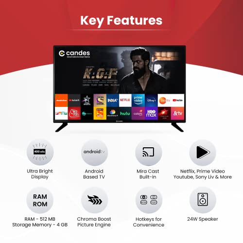 Candes 81 cm (32 inch) HD Ready LED Smart Android TV (CTPL32E512SA3) with Inbuilt Rich & Surround 24W Box Loud Speakers