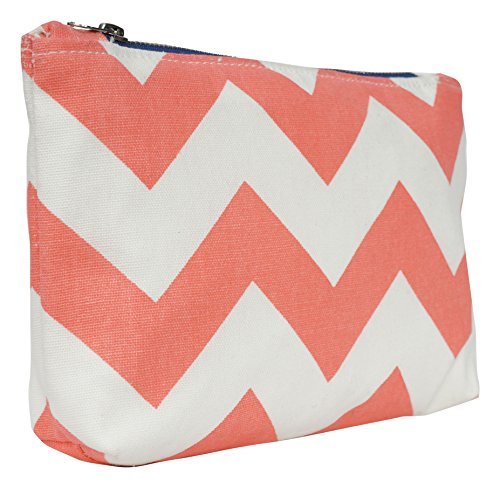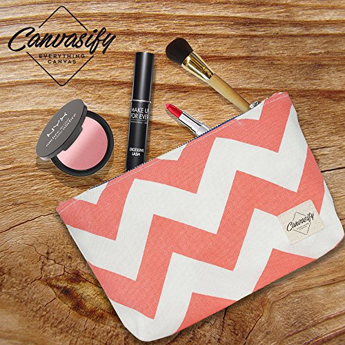 Canvasify Chevron Canvas Travel/Make up Pouch | Staionary Box | Toiletry Bag | Cosmetic Organiser (Coral)