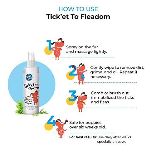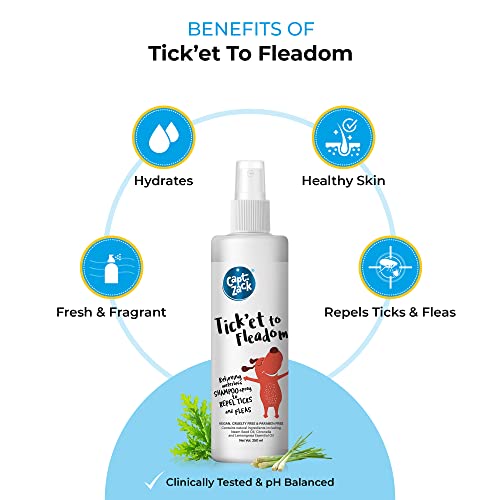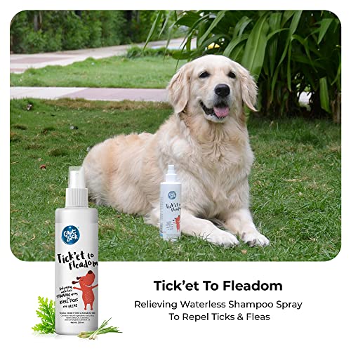 Captain Zack Dog Spray Shampoo for All Breeds | Tick’et to Fleadom 250ml Dry Waterless Shampoo | Repels Tick, Flea, Larvae & Lice, Easy to Use & Suitable for All Coat Types | Natural Actives