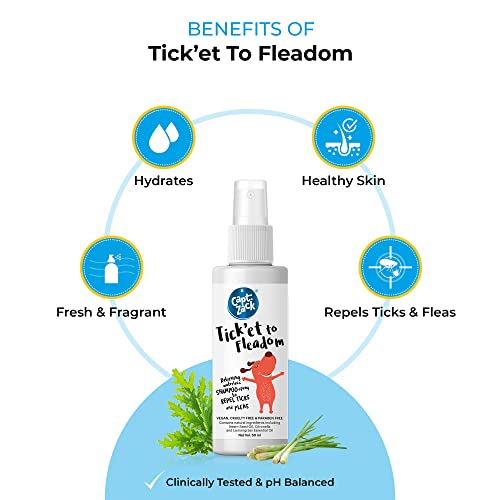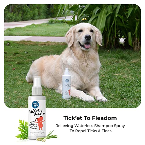 Captain Zack Dog Spray Shampoo for All Breeds | Tick’et to Fleadom Dry Waterless 50ml (Pack of 2) | Repels Tick, Flea, Larvae & Lice, Easy to Use & Suitable for All Coat Types | Natural Actives