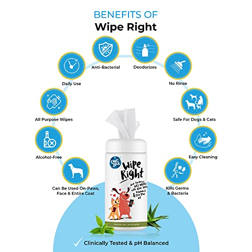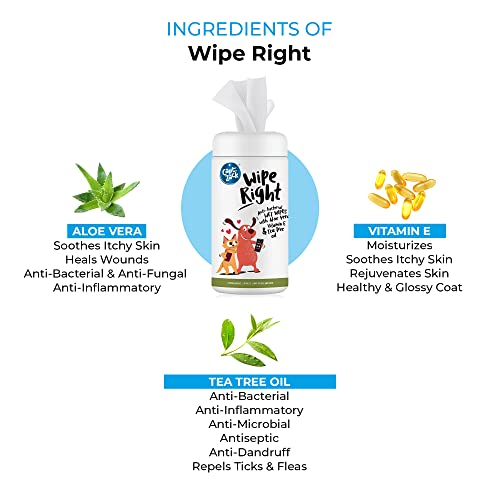 Captain Zack Wipe Right Anti-Bacterial Pet Wipes for Dogs & Cats | 80 Wipes | 100% Biodegradable |Dry Bath, Ear & Paw Daily Cleaning | Contains Tea Tree Oil, Vitamin E & Aloe Vera |