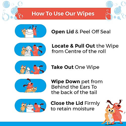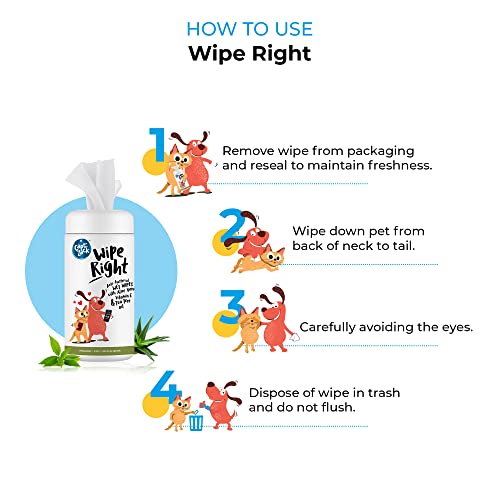 Easy-To-Use: Simply pull one out, wipe dirt and grime off the coat and there you go- one super clean pet ready to play with. Remove wipe from packaging and reseal to maintain freshness. Wipe down pet from back of neck to tail, Carefully avoiding the eyes. Dispose of wipe in trash and do not flush.