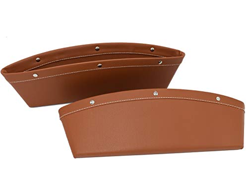 Car Seat Gap Filler & Pocket Organizer – Between Seat and Console – Premium PU Leather Caddy for Automotive Interior Accessories – Side Seat Catcher (2Pcs) Brown