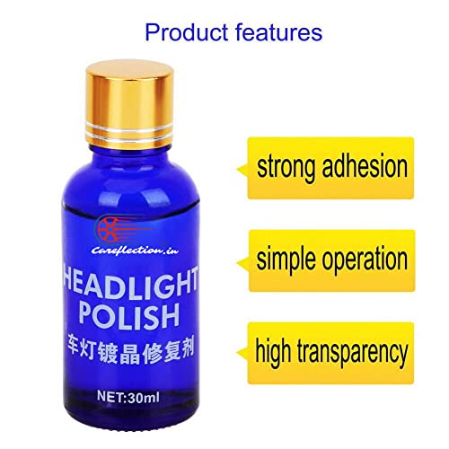 Careflection Automotive Headlight Restoration Scratch Repair Agent Premium Vehicle 9H bond Ceramic Coating NANO HEADLAMP CRYSTAL PLATED Polish Liquid Glass Care Hydrophobic Auto Detailing for Automobiles, Cars & Motorcycles (30 ML with Sponge)