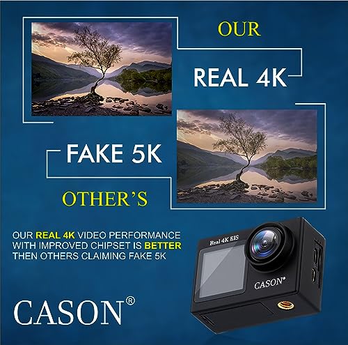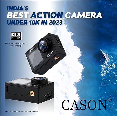 CASON CS6 Real 4K 60 Fps HD Dual Screen Action Camera for Vlogging with EIS+Gyro,Anti Shake Touch Screen with External Mic, 2 x 1350 mAh Battery and Accessories Kit