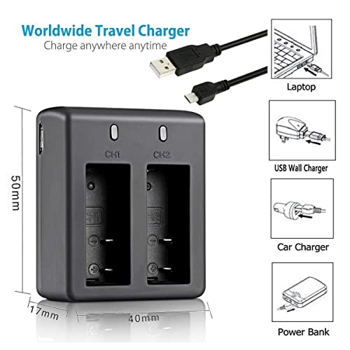 Rapid 2-Channel Charger:Battery Charger aof action Camera Allows charging 2PCS batteries at one time,Help you to Save More Time. over charge protection, shortage protection, Safe and reliable.