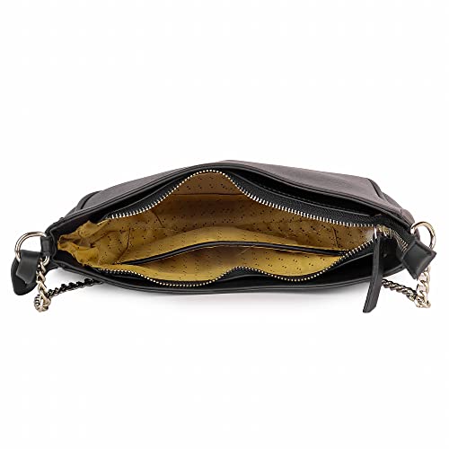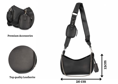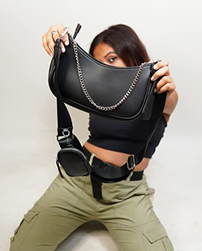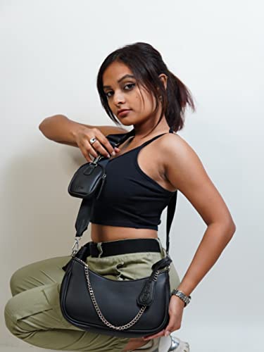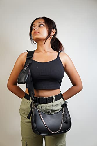 The sleek black color is the epitome of elegance, adding a touch of sophistication to any outfit. The cross body design allows for hands-free convenience, while the adjustable strap ensures a comfortable fit for all body types. The spacious interior is designed to accommodate all your essentials, from your phone and wallet to your keys and makeup.