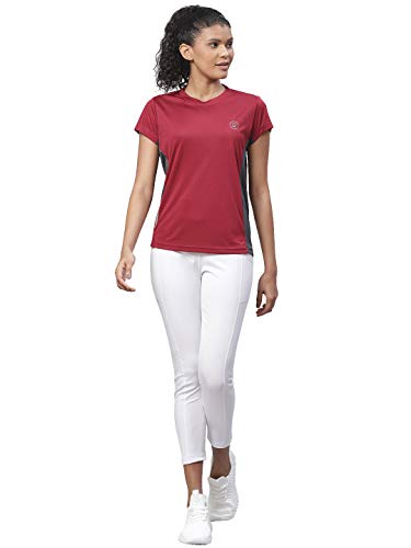 This sportswear is an actual combination of ease and composure with double stitching at borders. It is fabricated with 95% Polyester and 5% Elastane which gives allowance to wear in every season. The one who wears this sports t-shirt will feels softness, light and will surely get eye-catching attraction from everyone because of its distinctiveness and eccentric colors. It has antimicrobial and sweat-wicking technology which eliminates sweat, wicks moisture away from the body, so you stay dry in any ambience and its anti-odour properties prevent bacterial growth to keep you fresh and never let you smell in any weather. In body heat-up activities human body generally goes wet; it protects the body from being damp. The ultra-soft and natural feel fabric has moisture transport system. The 4-way stretch construction moves better in every direction and renders natural movement. Women gym , yoga,sports t-shirt fits next to skin without the squeeze and it is very much flimsy.