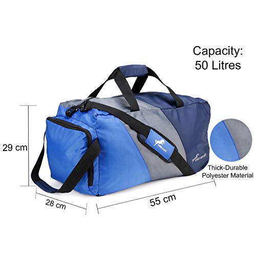 Chris & Kate Polyester Blue 50 litres Travel Foldable Spacious Duffle Bag with Wheels Lightweight Trolley Bag with Space Saver Self Storage Luggage Bag-203