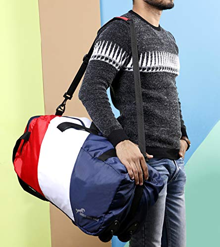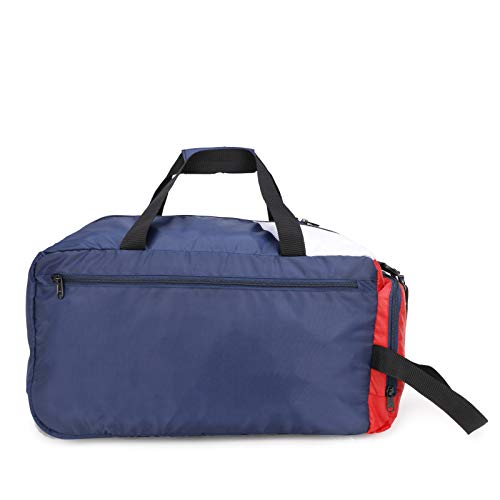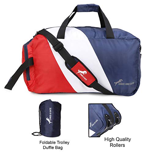 Chris & Kate Polyester Blue-White-Red 50 litres Travel Foldable Spacious Duffle Bag with Wheels Lightweight Trolley Bag with Space Saver Self Storage Luggage Bag-200
