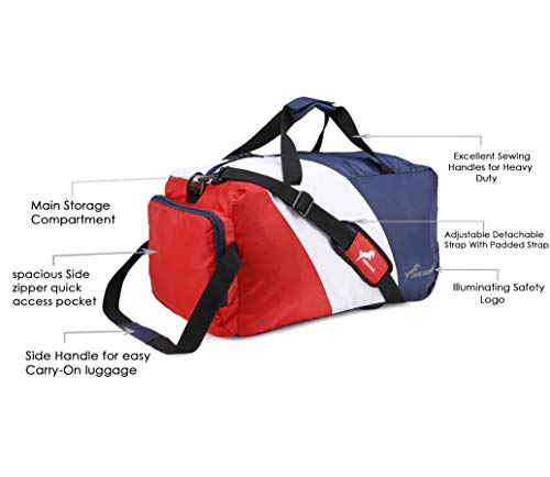 Material: Built with high-quality polyester fabric for the utmost durability. Made from water repellent & premium zippers, it makes it a super durable and lightweight all-weather travel duffle bag.