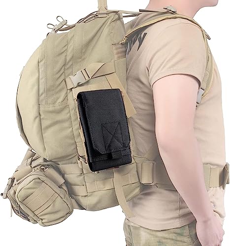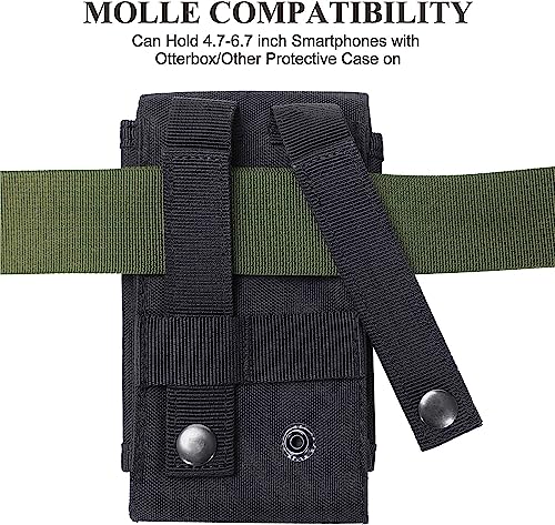 Clixera Tactical Mobile Pouch, Polyester Smartphone Card Holster, Army Camo Molle Bag for Mobile Phone Belt Pouch Holster Cover Case, 16.5 X 9.5 X 2.5 cm (Black)