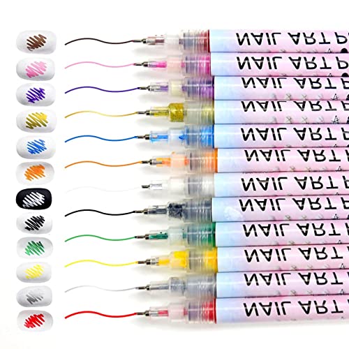 Package includes: This set contains 12Pcs nail design pens, various colors for you to use, can create more styles.