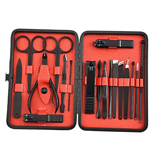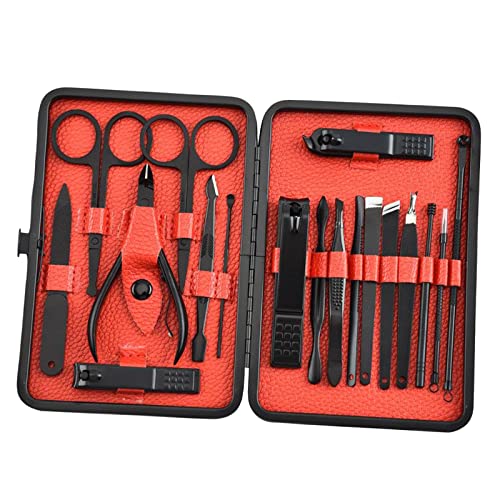 Set of 18Pcs: Manicure Pedicure Set Kit contains 18 tools, including tweezers, a cuticle clipper, nail clipper, nail file, ear pick, cuticle pusher and so on.