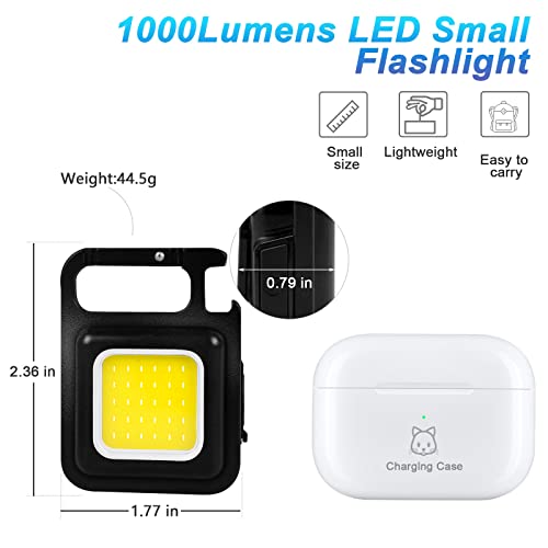 Cob Key Chain Work Light, 1000Lumens Rechargeable Waterproof Portable COB Small Flashlights with 4 Light Modes, Mini COB Light with Folding Bracket and Strong Magnet for Walking RV Camping(4 Pack)