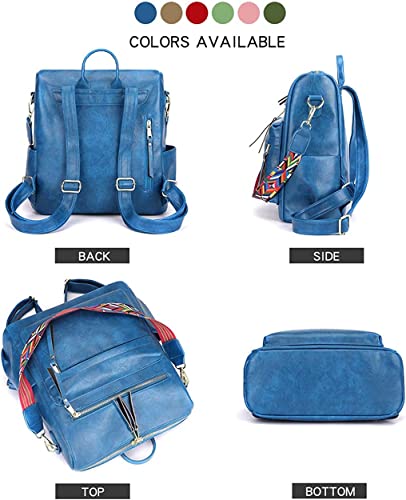 Women Backpack Purse, Fashion Leather Designer Ladies Rucksack, Convertible Travel Shoulder Bag with Colorful Strap