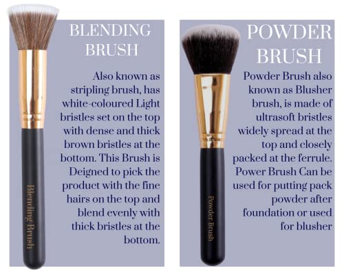 Doris Brown Present Makeup Brushes made of high quality bristles and high grade aluminum Blending Brush – Also known as stripling brush, has white-coloured Light bristles set on the top with dense and thick brown bristles at the bottom. This Brush is Deigned to pick the product with the fine hairs on the top and blend evenly with thick bristles at the bottom. Powder Brush – Powder Brush also known as Blusher brush, is made of ultrasoft bristles widely spread at the top and closely packed at the ferrule. Power Brush Can be used for putting pack powder after foundation or used for blusher. Small Contouring Brush – Contouring Brush, is an ergonomically designed brush, to comfort the upward dabbing and swiping motion required in contouring. Specially the size of the brush makes is more precise and accurate. The softness in the bristles makes it suitable for both powder and liquid. The shape of the brush is so perfect that it creates a lineless contouring effect. Foundation Brush – Foundation Brush as the name suggest is used to apply foundation on face and neck. Foundation brush is closed packed straight hair bristles which are also stiff for the even application of the foundation. Eye Blending Brush – Brush is a round shaped, long handle brush design to blend flawlessly over the eyelids. Eye Blending makeup brush is ergonomically designed to perform wiper-like motion to create a crease on the upper Eye Lid. Eye Liner Brush – Eye Liner Brushes is a pencil-shaped brush with hard and tightly packed bristles specifically designed to do a very precise function of drawing a line. Most Important part of any eye makeup is a perfect eye line, which is done best with an eyeliner brush. Eye Base Brush – Eye Base is a long handle round space brush, with tightly packed yet soft bristles. Eye Base Brush as the name suggest is you to create a base on the upper eye lid. By using a liquid cream the eye base brush works flawlessly.