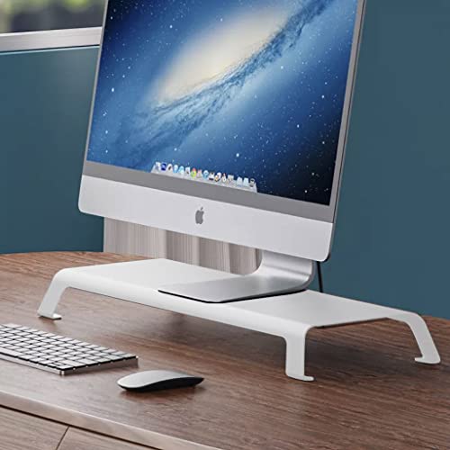 Concept Kart P23 Computer Monitor Stand Aluminium Alloy Metal Riser Desktop Organizer with Sturdy Feet Compatible 18.5” to 27” Monitors, Home, Office, Laptop, Notebook | Monitor Heightening Mount with keyboard Storage (White)