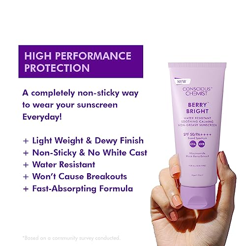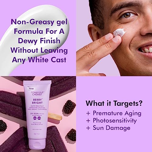 Conscious Chemist® Hybrid Lightweight Gel Sunscreen SPF 50 PA ++++ with Water Resistant, Niacinamide, Black Berry Extract | Non-Greasy, No White-Cast | All Skin Types, Cruelty Free | 50 g