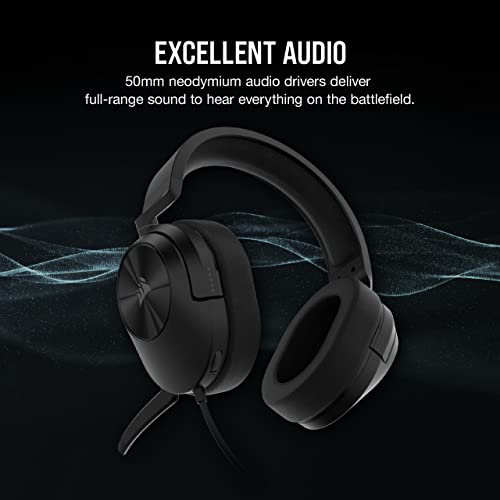 Corsair HS55 Stereo Gaming Wired On Ear Headset (Leatherette Memory Foam Ear Pads, Lightweight Construction, Omni-Directional Microphone, Multi-Platform Compatibility Included Y-Cable Adapter), Carbon