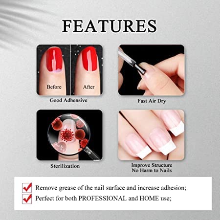 ❤NO MORE LIFTING: Dehydrator nail prep is especially to get rid of the oil and dry up the whole cuticle in the nail bed area. The acrylic nail primer is less corrosive and works like double-sided tape to stick nail and product together. So you have double protection against lifting. When used together these nail dehydrator and acrylic primer, it will prevent lifting and provide acrylic nails for lasting more than 30 days.
