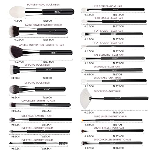 20-Piece Brush Collection – 6 Pcs Basic Big Kabuki Makeup Brushes and 14 Pcs precise makeup brushes.Cover all kinds of your makeup application from beginner to professional.High Quality Bristles – High density fluffy bristle, soft but firm to hold makeup. No shedding. Premium synthetic fiber materials provide an incredible touch and feel.Professional Eyeshadow Brushes – Grade A Goat Hair are the best for eye blending makeup,they pick up and absorb pigment along with skin’ s oils.soft and durable,The brushes are rubbed against the palettes and the eyes multiple times. If the material is not durable enough, the bristles will start coming off. So, be sure to purchase a good quality brush that stays durable for lengthy and frequent use.Classic Design – Black is always the classic color. The silver metal ring and tight fiber hair show exquisite craftsmanship everywhere. The comfortable wooden handle is easy to hold, and the thick metal ring makes it difficult to fall off and is used for a long time.Ideal For Gift – Classic black makeup brushes set is the unique gift for mom, wife, women friends on any occasion, such as birthday, Valentine’s Day,any Anniversary, Mother’s Day, Christmas Day, Thanksgiving Day, etc.