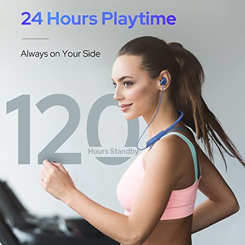 COSTAR Mateband Bluetooth Wireless Neckband – 24H Playtime, Dual Equalizer Bass Boost Drivers, In Ear Earphones with Mic, Soft Earwings Eartips Design, Type C charging, IPX5 Waterproof (Smart Blue)