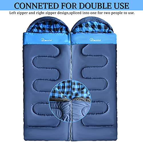 UNIQUE DESIGN—-SEPARATE LEFT or RIGHT ZIPPED SLEEPING BAG: The left-zip sleeping bag can be easily zipped together with a right-zip one to create a super large double sleeping bag for two or more people use.