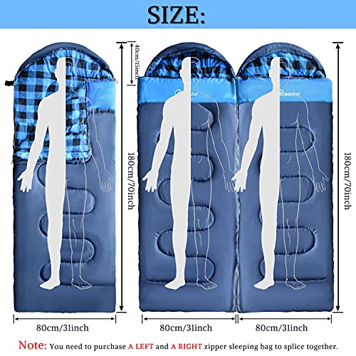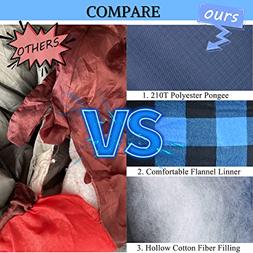 Cotton Flannel Sleeping Bag for Adults Boys and Girls, Zip 2 Bags Together for 2 Person Use, 2/3/4lbs Filler Can Be Choose, Warm and Comfortable Sleeping Bag for All Season Hiking & Camping