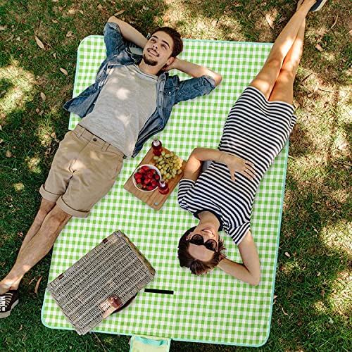 Cozen Picnic Mat Blanket | Beach Mat | Outdoor Foldable Water-Resistant Portable Mat | Used for Yoga | Camping Hiking Grass Travelling | Picnic Backpack Accessories (Green Checks)