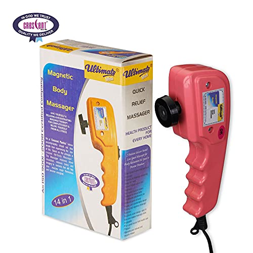 CRESCENT Ultimate Mini 14-in-1 Quick Relief Magnetic Full Body Electric Massager with 14 Applicator and 2 Speed Setting (Mild, Strong), Red