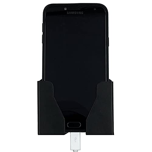 Crinds® Pure Metal Wall Mount Mobile Cell Phone Stand Holder for Charging Near Wall Socket to Hold All iPhones, Smartphones, Smartwatches, Chargers & Accessories (SP-Black, Single)
