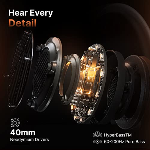 CrossBeats Roar Hybrid ANC Headphones with 35db Active Noise Cancelling, Bluetooth Wireless Over Ear Headphones, 70hours Playtime,Fast Charge, Ambient Sound Mode,40mm Driver, Built-in Equalizer Black