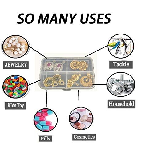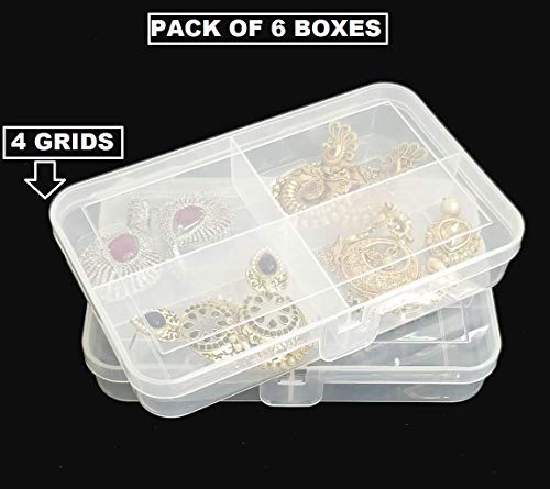 CSM Jewelry Case Organizer Multipurpose Plastic Storage Box with dividers 4 Grids, Transparent (Pack of 6 Boxes)