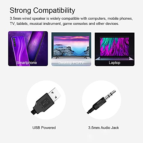 ☆ 3.5mm wired speaker is widely compatible with computers, mobile phones, TV, tablets, musical instrument, game consoles and other devices.