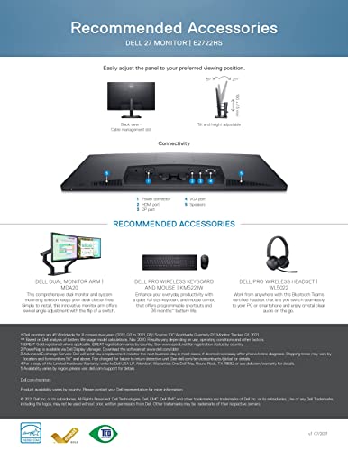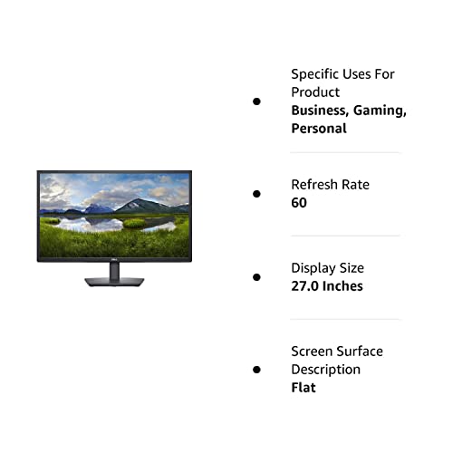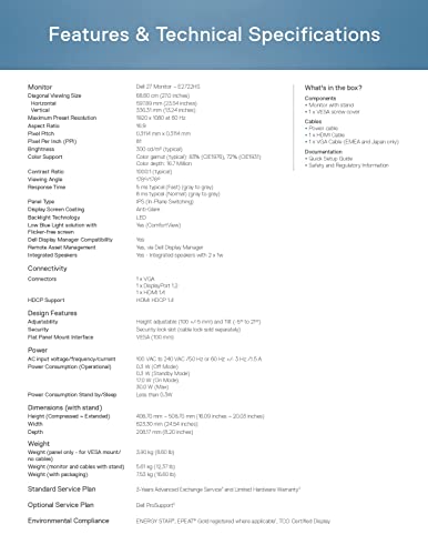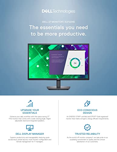 Dell 27″ (68.58 cm) FHD Built-in Dual Speakers Monitor 1920 x 1080 Pixels at 60 Hz|IPS Panel|Brightness: 300 cd/m²|Colour Support: 16.7m|Response Time 8ms(G-to-G Normal),5ms(G-to-G Fast) E2722HS-Black