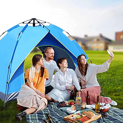 Device Camping Pop up Tent, 3-4 Person Portable Tent Instant Easy Set up Tent Waterproof Windproof Automatic Tent for Hiking Camping Mountaineering(Multicolored)